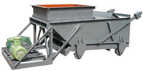 往復(fù)式給煤機適用于礦井和選煤廠,將煤碳經(jīng)煤倉均勻地裝載到輸送機或其它篩選,貯存裝置上。該機結(jié)構(gòu)是由機架、底板(給料槽)傳動平臺、漏斗閘門、托輥等組成。